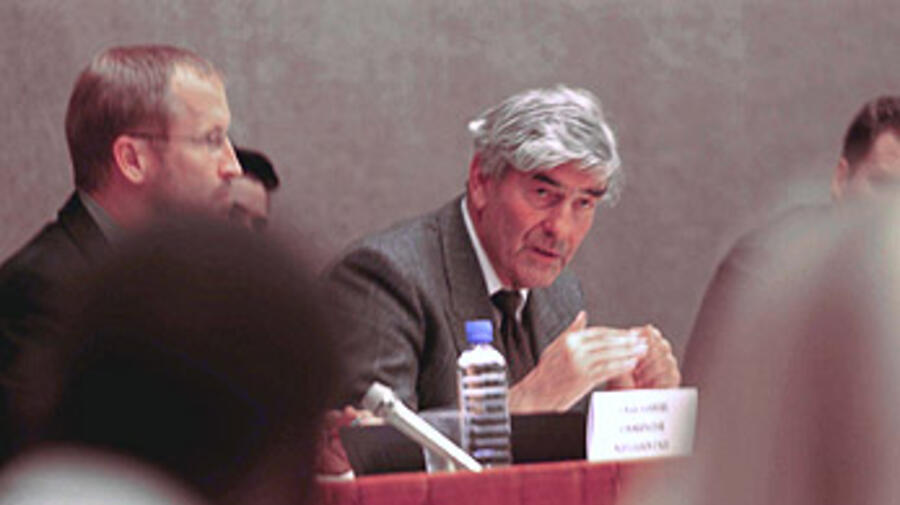 UN High Commissioner for Refugees Ruud Lubbers addressing NGO delegates at the opening of Pre-ExCom in Geneva.
