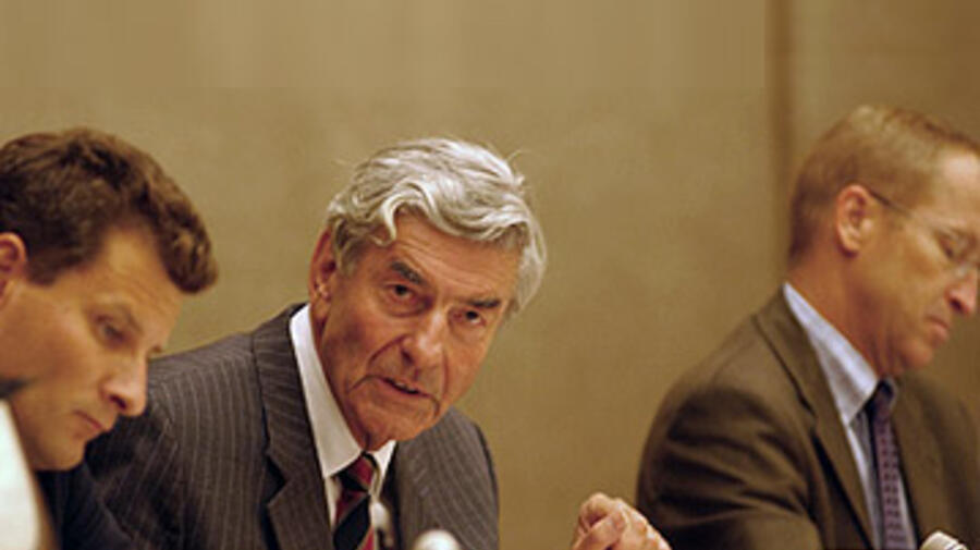 High Commissioner Ruud Lubbers addressing NGO partners at the end of the Pre-ExCom meeting in Geneva.