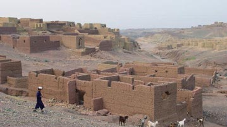 A boy and his goats wander in the ruins left by the repatriation of about a third of the Afghan refugees from Shamshatoo camp near Peshawar.