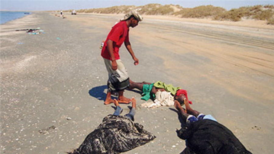 Risking All: The bodies of people who died trying to make the Gulf of Aden crossing.