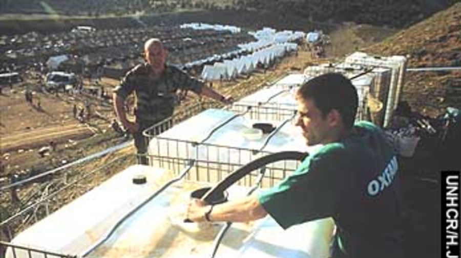 OXFAM installing a water system at Stankovac I camp, FYR of Macedonia.