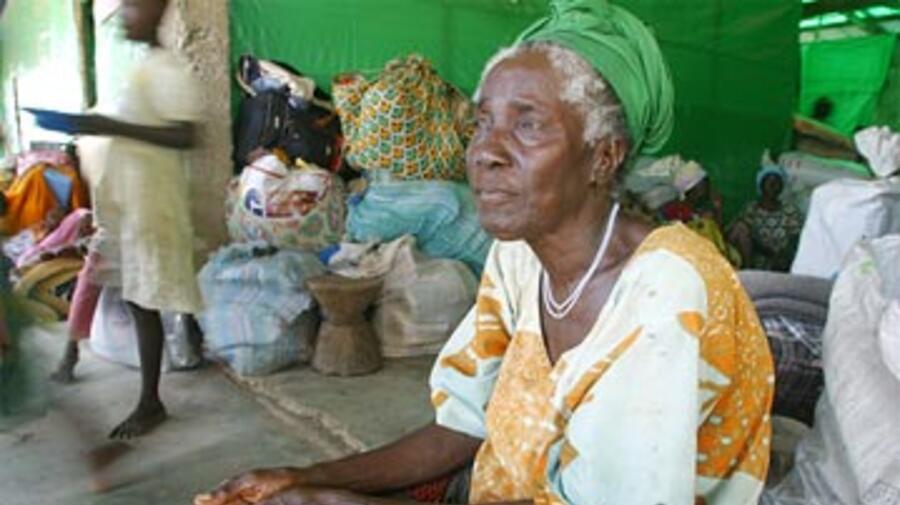 Coming home from Côte d'Ivoire, Liberian returnees become internally displaced persons at Karnplay transit centre in eastern Liberia.