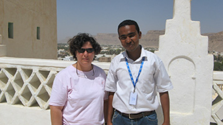 Protection Officer Myra Sabongi with a UNHCR colleague in southern Yemen.