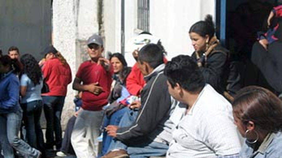 Asylum seekers outside the Pro-Refugee Committee reception centre in Quito.