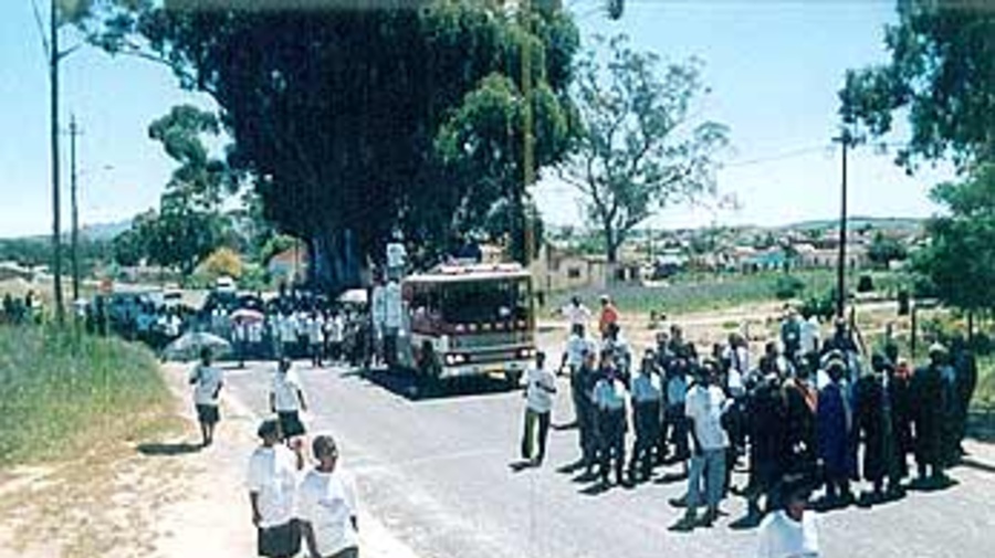 Refugees and asylum seekers joining the local community in a march against crime in Mbekweni.