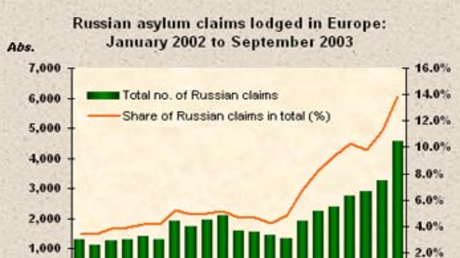 Russian nationals marked the most significant increase, with 23,681 asylum applications over the first nine months of the year. Their steep and steady rise - from over 5,000 in the first quarter to 7,700 in the second to nearly 11,000 in the third - has made them the top group of asylum seekers in industrialised nations, a position previously held by the Iraqis.