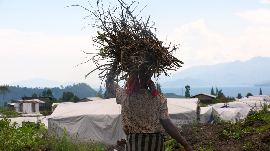 A woman heads home with a bundle of firewood in eastern Democratic Republic of the Congo. Violence against women is a very real threat in the area.