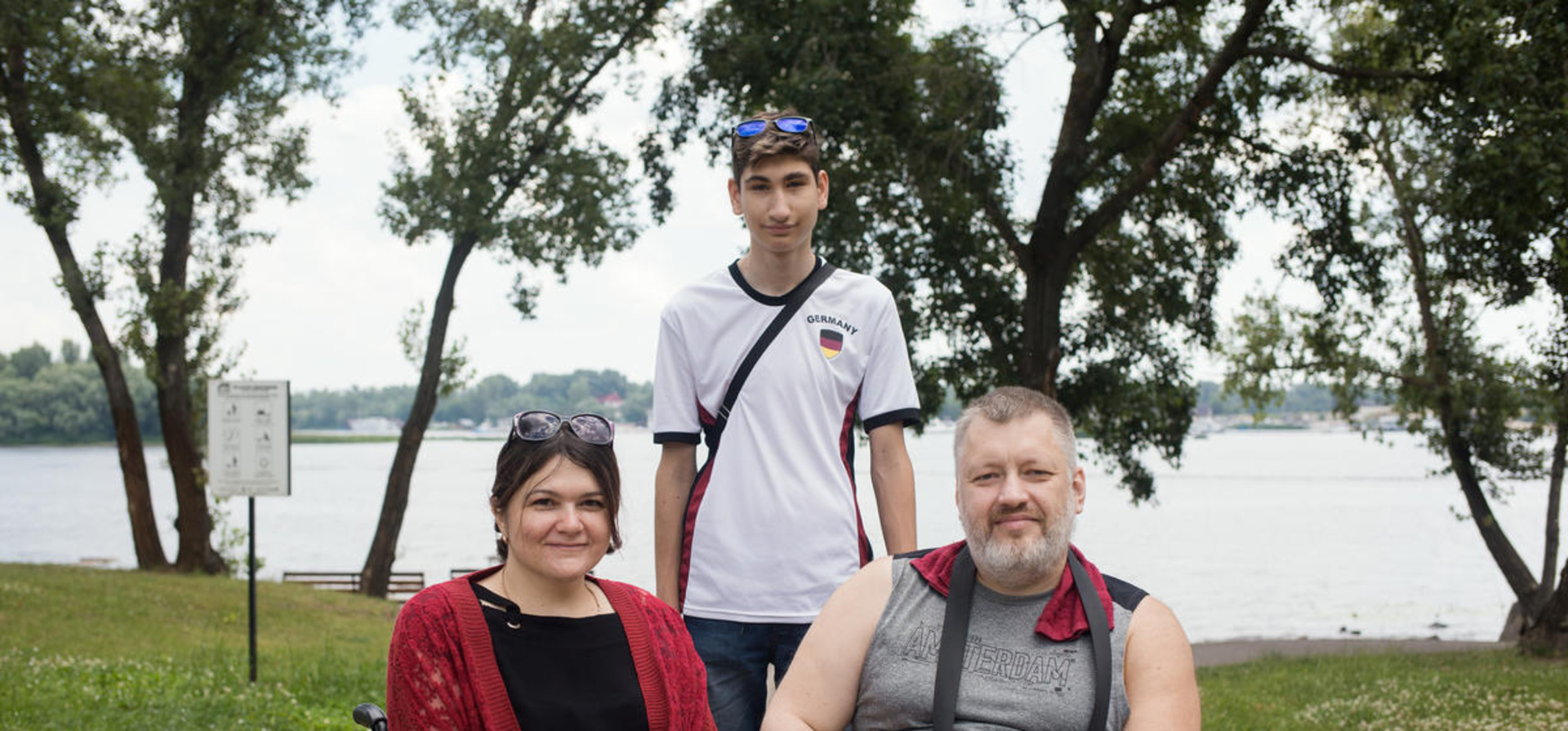 Amid the fighting, she was able to escape by road from Luhansk with her son Pavlo, who was then eight years old, and her husband, Oleksiy Soroka, who also uses a wheelchair.