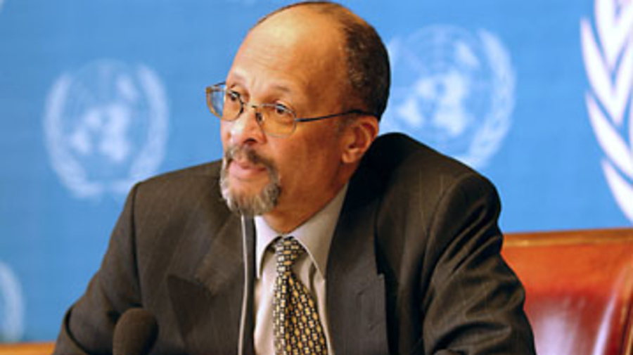 UNHCR's Africa bureau director David Lambo briefing reporters in Geneva on progress and challenges a year after the March 2004 Africa Dialogue.