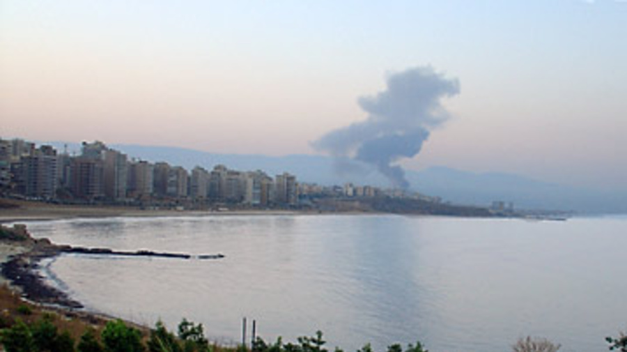 Smoke billows from southern Beirut after an attack. Damage from air raids is hampering the work of UNHCR and other humanitarian agencies helping displaced Lebanese.