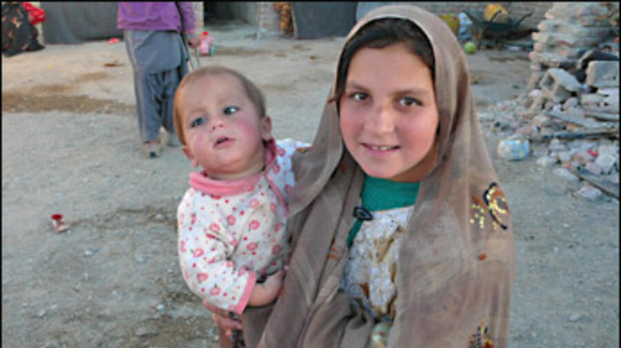 Not Just Statistics: An Afghan girl carries her infant sibling in Iran's Sistan Baluchistan province. UNHCR's annual figures for 2007 show that the agency helped some 374,000 Afghan refugees return home last year.