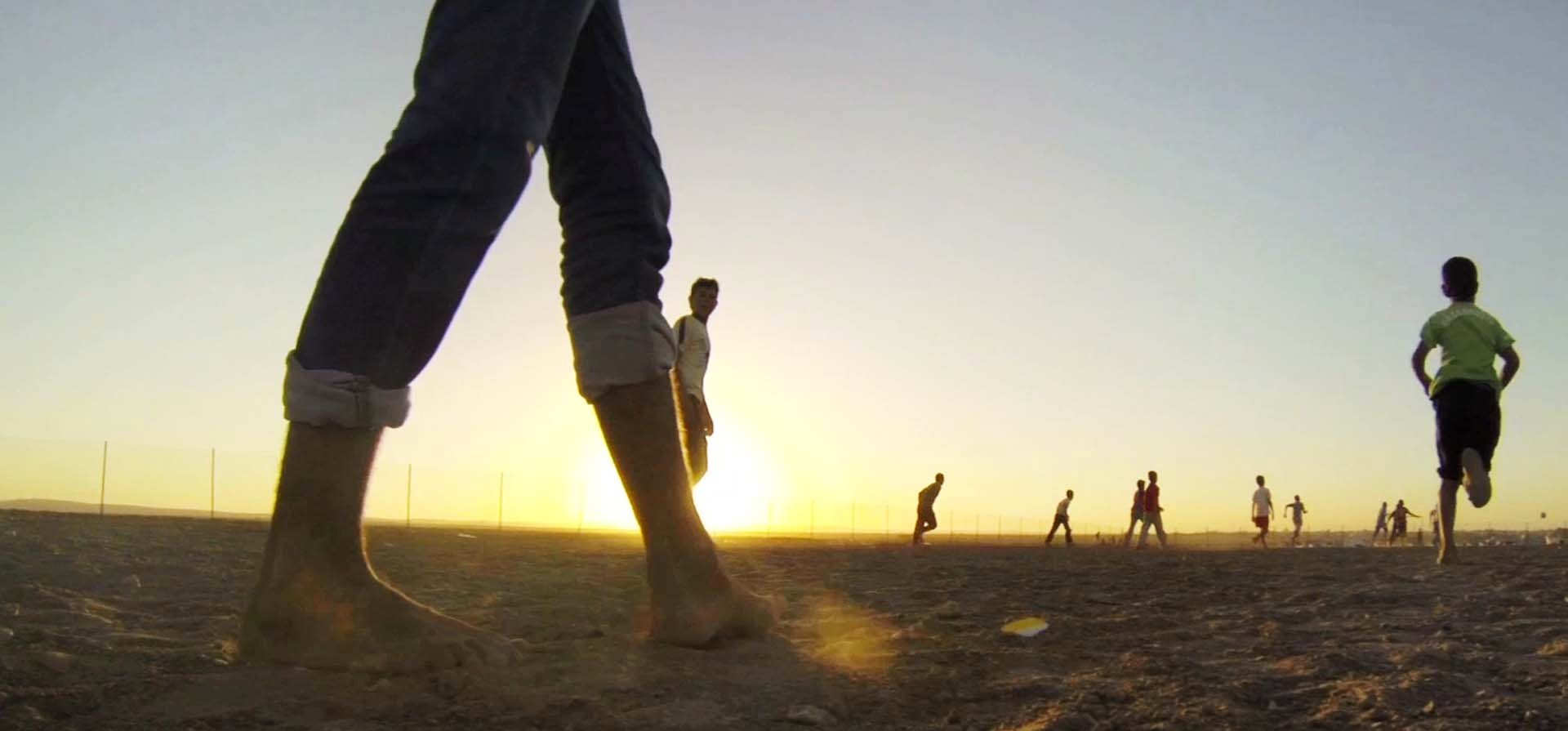 Abdallah's football team practices at Za'atari refugee camp, Jordan.