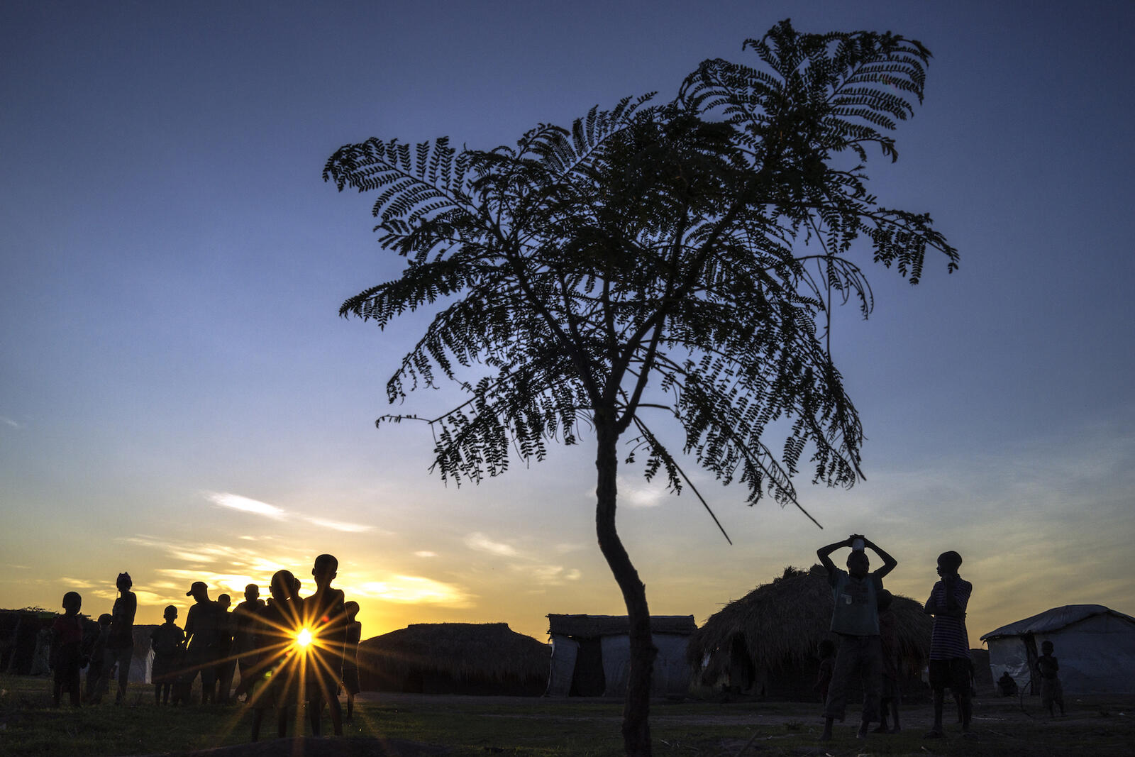 The sun is setting at Lukwangulo camp in Katanga, Democratic Republic of Congo, as women return from the fields and wells. On their lips is a traditional and joyful song. On their heads are cassava leaves. Tonight, they will sleep soundly – far from the sound of the bullets.