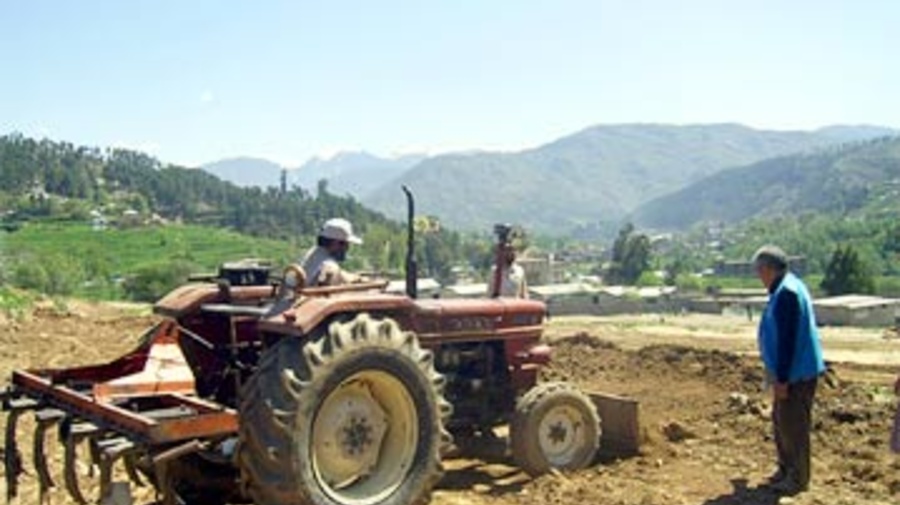 A UNHCR site planner works with the mobile team to rehabilitate the closed Maidan camp in Batagram, Pakistan.