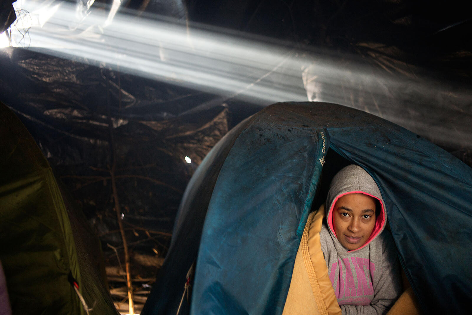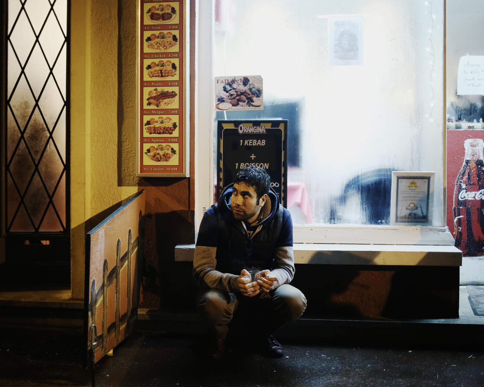 When I meet him one evening, down at the loading bay of a factory where he sleeps in Calais, France, he looks exhausted. His dark, curly hair is matted with rain and he gazes at me with gentle, brown eyes through the downpour. "All of us Syrians are in despair," he says. "We sleep on the streets. I have some money left, which I share, but I just want to get to Britain."