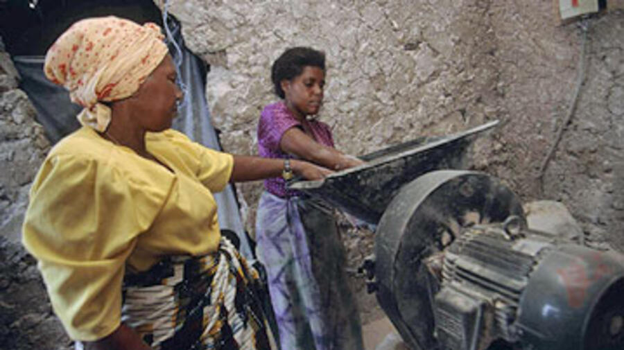 Women at work in a Rwandan mill supported by UNHCR. Some of the sanitary materials from Procter & Gamble will be sent to Rwanda.