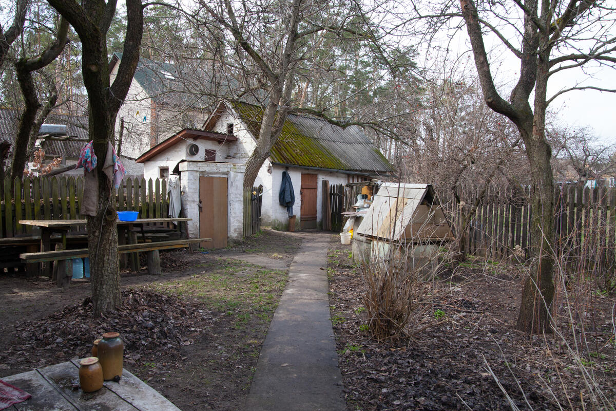 The yard of the house rented by Vira, 85 year old Internally Displaced Person.