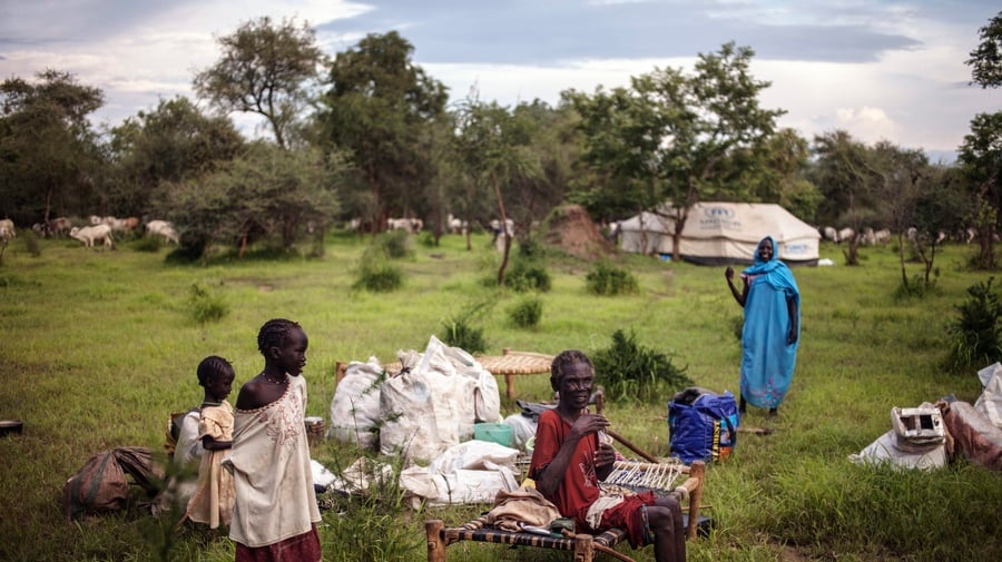 A family of Sudanese refugees at a camp in South Sudan earlier this year. The donor generosity will help people like these in the major displacement crises.