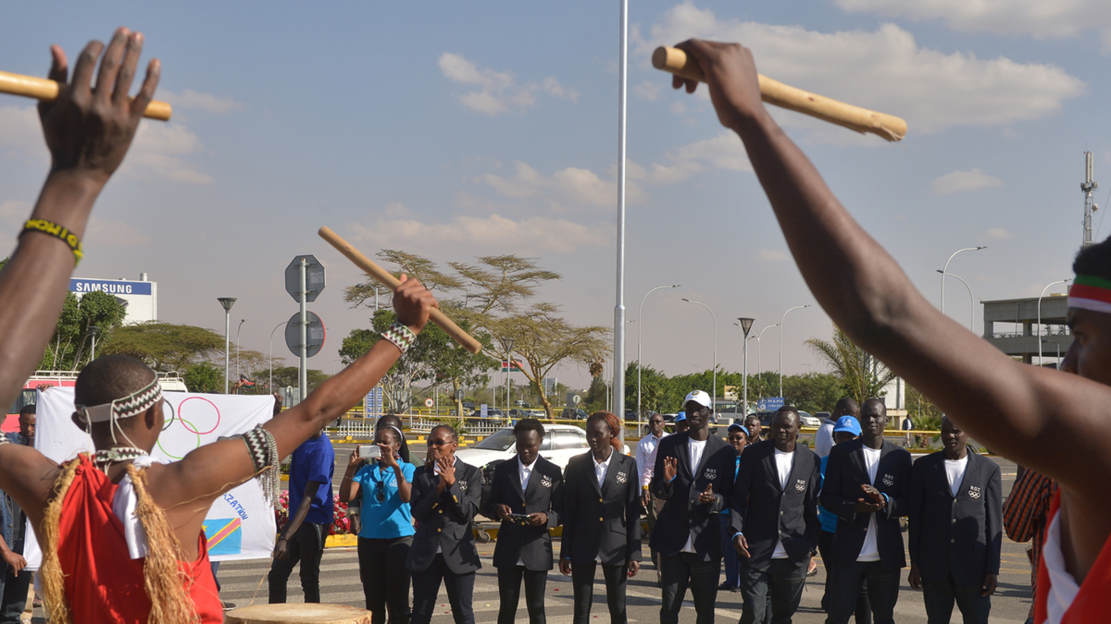 NAIROBI, Kenya – Five South Sudanese athletes who have spent the last few weeks making history as part of the first-ever Refugee Olympic Team returned to Kenya on Tuesday, where they were welcomed by friends, family and a troupe of Burundian drummers.