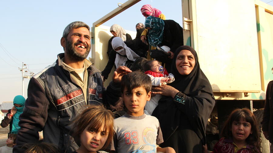 HASANSHAM, Iraq – Father of six, Mahmoud Ahmad, 35, had a huge smile on his face as he clambered out of the crowded truck packed with other families, holding his two month-old baby daughter, Farah, in his hands.