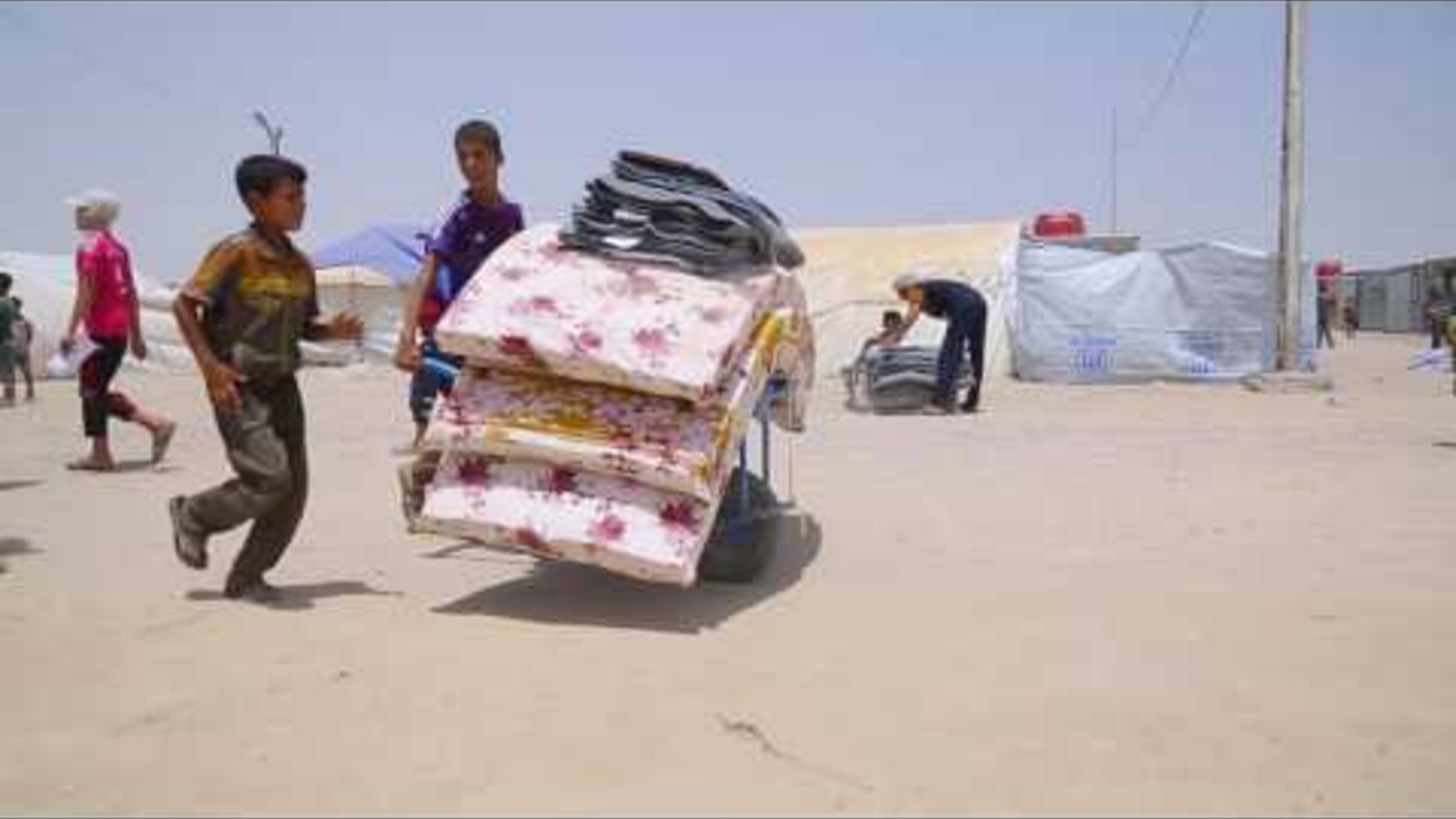 Families struggle in heat and dust of Iraqi desert camp