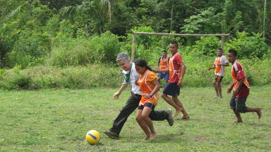 Marshalled by project implementer, CIDEMOS, members of the endangered tribe used machetes to hack out a football pitch from the dense tropical forest beside their palm-thatched homes. The goalposts were fashioned from bamboo and the players initially used a ball made from cloth.