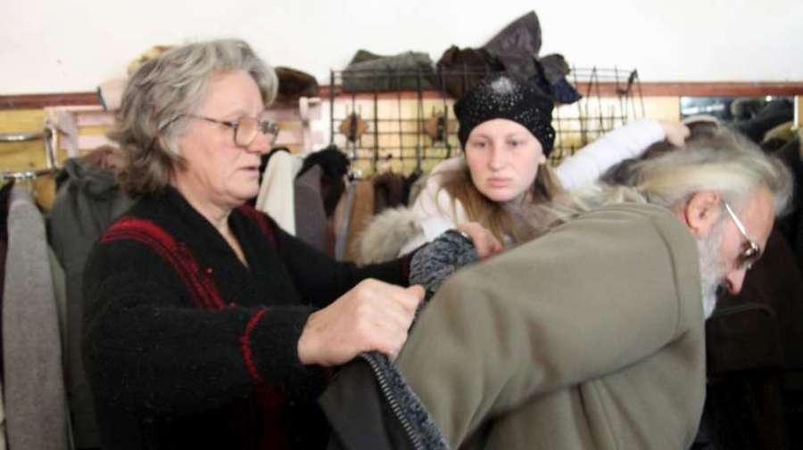 KHARKIV, Ukraine, February 11 (UNHCR) - In a room piled to the ceiling with clothes, a bearded man with a grey ponytail is trying on winter coats. Gennady, an architect and graphic artist in his early fifties, is in desperate need of something warm after escaping his hometown in eastern Ukraine and arriving in this frigid city in the summer clothes he was wearing in August when held captive for several weeks.