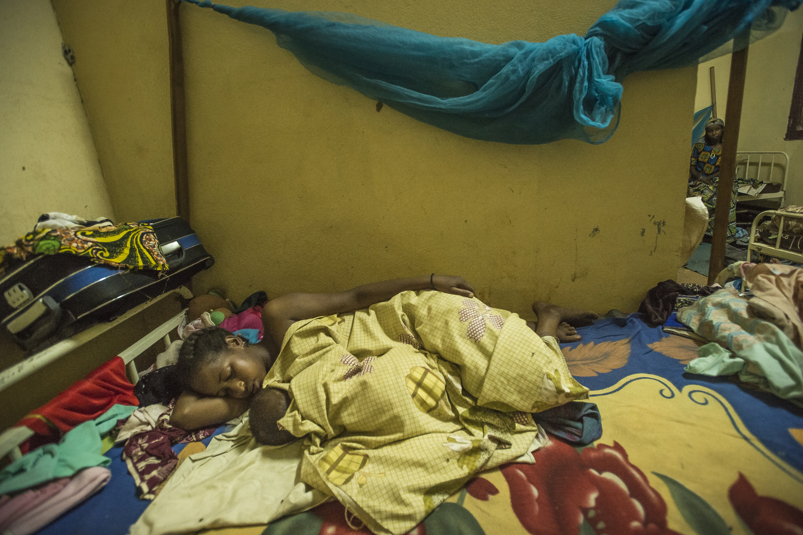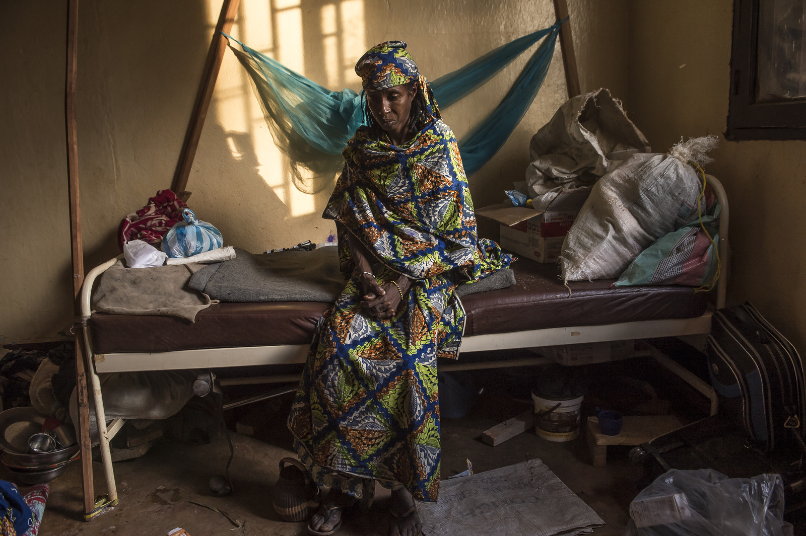 The 40-year-old refugee from Central African Republic sits and mourns on the hospital bed where the baby just died in the eastern Cameroon town of Batouri. He was also being treated for a nasty cudgel wound, inflicted by militiamen during the flight from the Central African Republic.