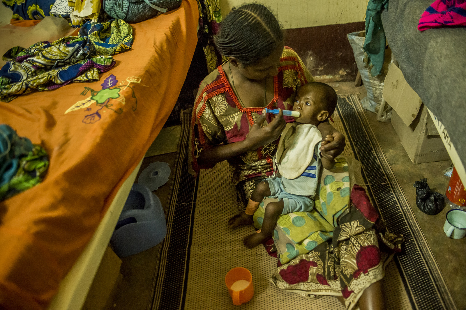 That includes milk and Plumpy'nut, a peanut-based paste for treatment of severe malnutrition. "Some children are unable to drink milk by themselves and we have to feed them through a tube [in the nose]," says Majaliwa. "The first meal of the day is at 6am and the last at 2am."