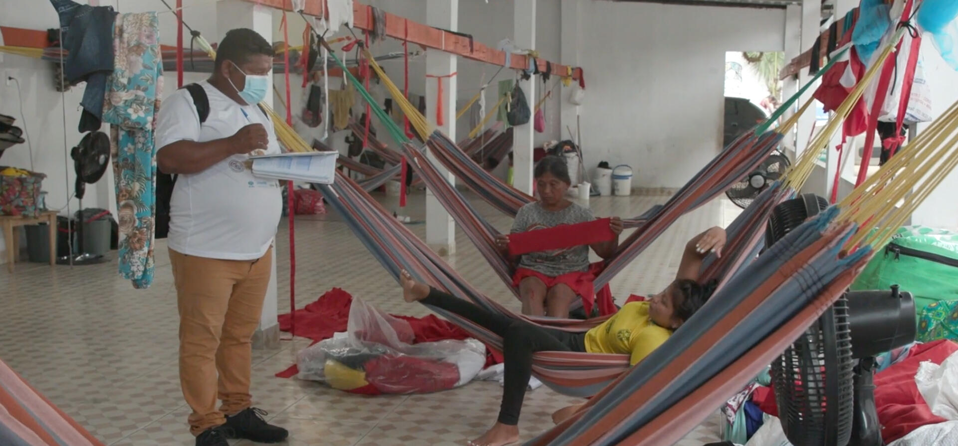 “I pay them [new arrivals] a visit, almost as if I were going to visit with family, and I chat with them and take down their information, find out what they need,” she says, adding that her job involves acting as an intermediary between the Warao and Caritas. “I try to help by informing and orienting both the community and also the institution.”