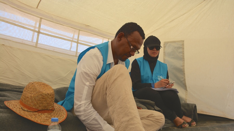 At Khazair, UNHCR is providing tents, as well as other emergency items like mattresses, blankets, water containers and hygiene supplies. Wael and Jwan walk from tent to tent. They fill out a three-page questionnaire for each family, gathering information on their history, why they fled, and what they need. This helps UNHCR and other humanitarian organizations understand how best to help.