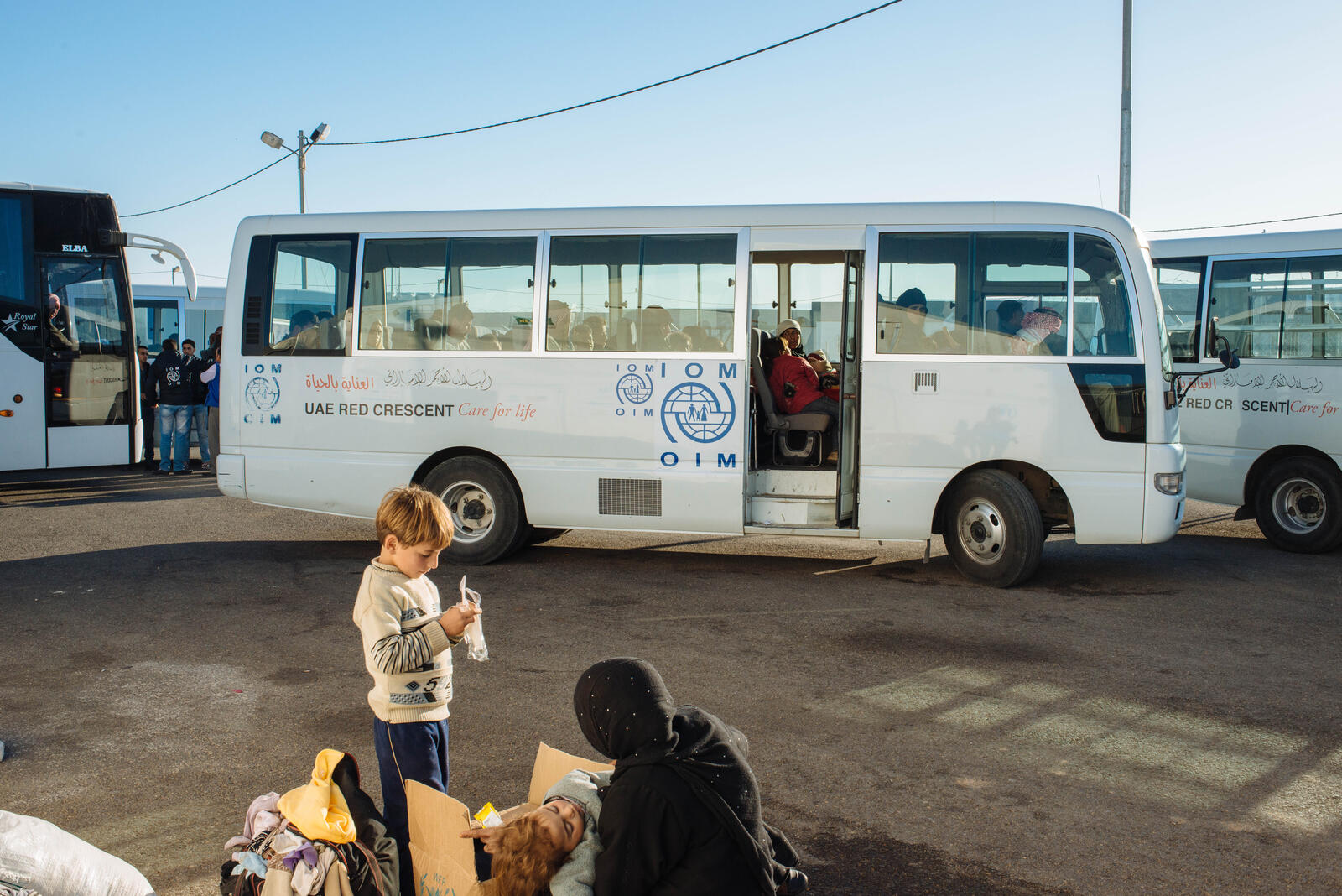 A first group of 230 Syrian refugees arrive at the newly opened Azraq camp, which will be run by the Jordanian authorities with help from UNHCR.