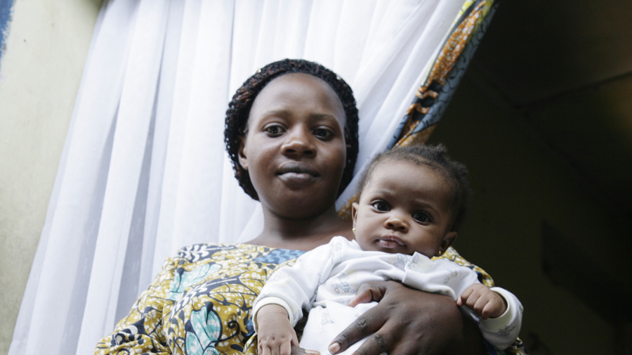 Rwandan refugee Clementine Uwimana, 30, with baby Malaika, who is named after the UNHCR community services assistant who oversaw Clementine's pregnancy.