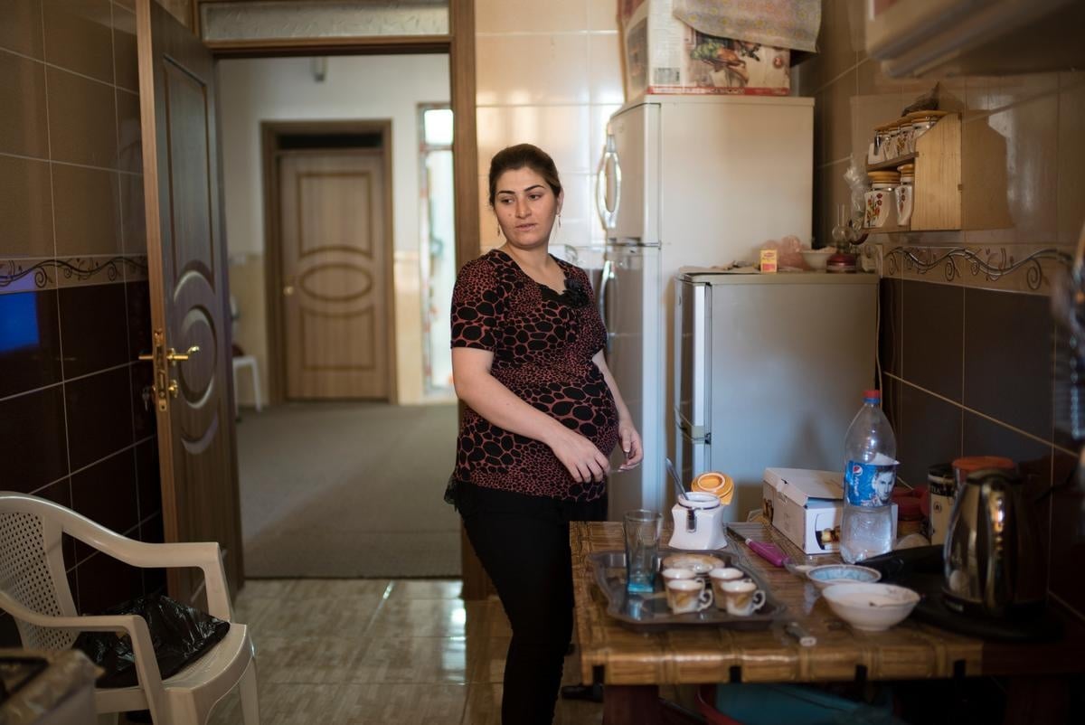 Fatima, also from Syria, moved to Iraq's Kurdistan region to live with her husband, Khalil. He had already been living and working in Erbil for the past two years, but wanted to marry a woman from his hometown, Derik. Now just a year after their marriage Fatima is eight months pregnant with their first child.