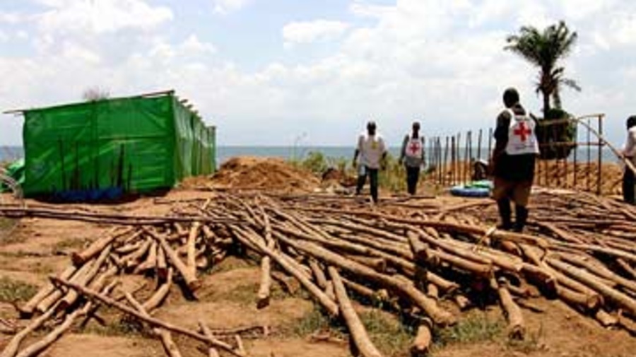 Constructing latrines for Congolese returnees in the transit cenre near Uvira in eastern Democratic Republic of the Congo.