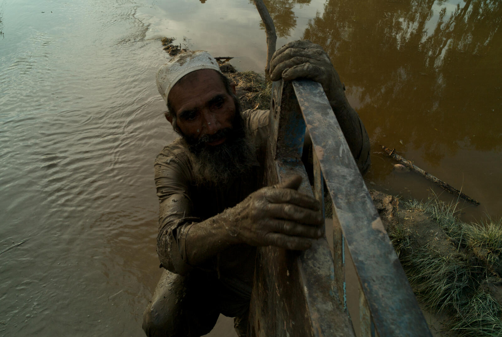 "When we came out of the house, the water was up to my knees. We had only walked for ten minutes and it reached my abdomen. I had to carry my children on my back," he recalls. Zahir Shah reached his friend's house first and rested there for a time. But as more and more people arrived he had to move out, finding space with others in a nearby school.