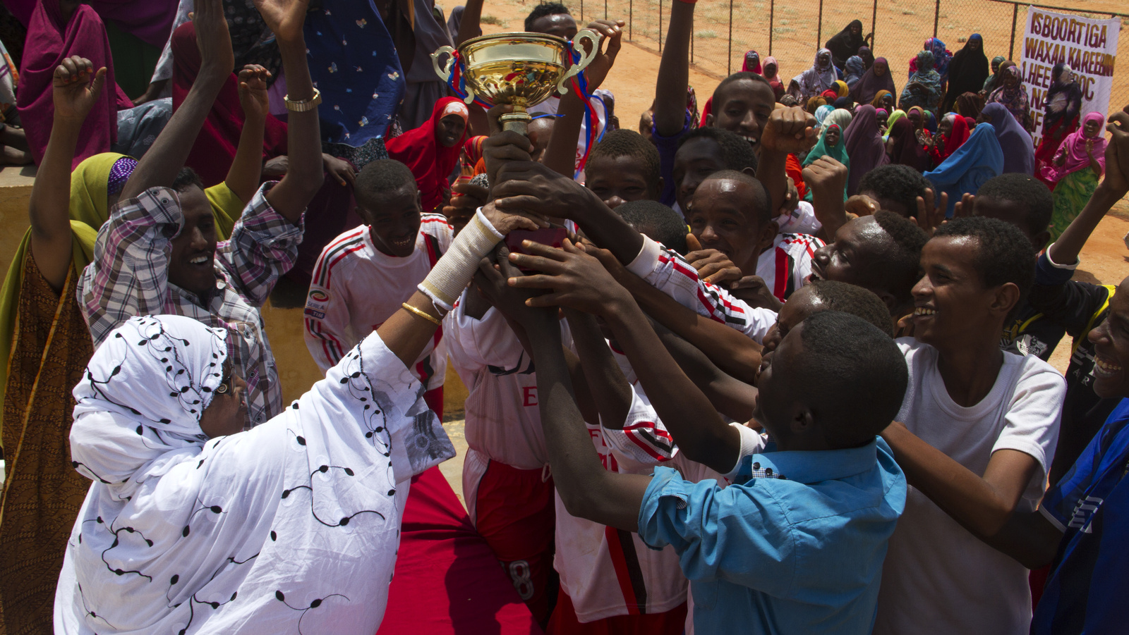 The centre offers free schooling to girls as well as literacy and awareness classes for women, tailoring courses, vocational training for boys, and food and other relief items to the displaced. Since it opened in 1999, the number of girls receiving education in the Mudug district has risen from 7 per cent to 40 per cent, the highest in the country, according to the UN Children's Fund (UNICEF).