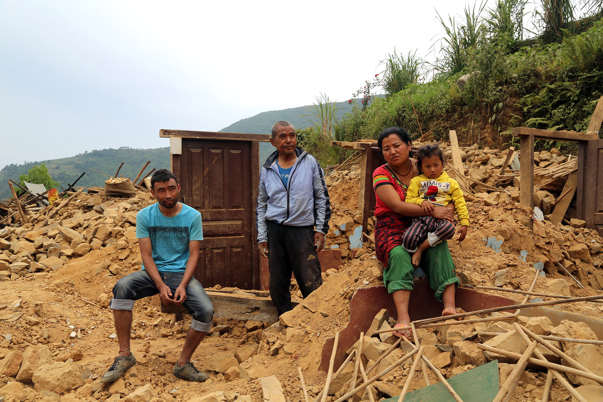 Raj Kumar Tamang (left) was working in Bahrain when the earthquake hit. He flew home to help his family -- including his father, sister and nephew -- pick up the pieces.