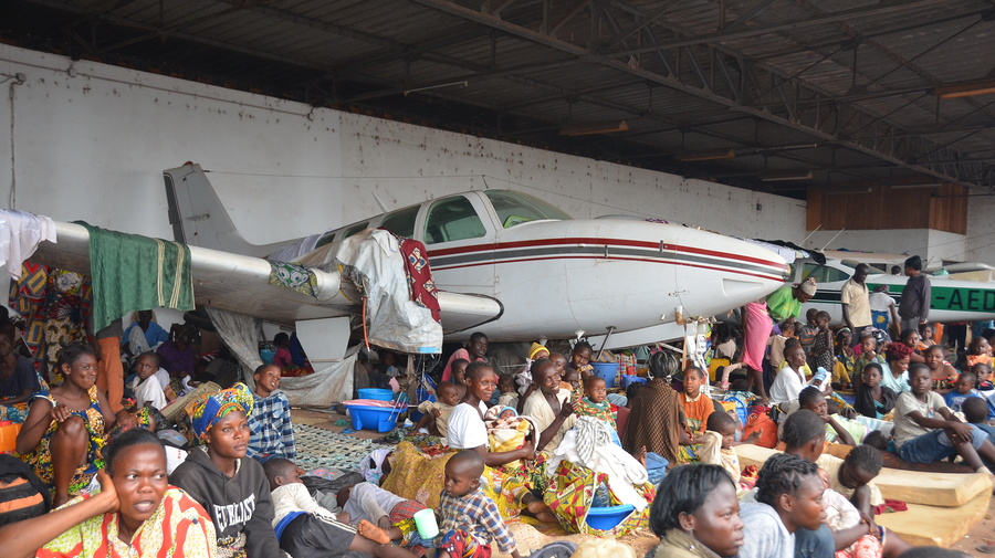 Displaced families seek shelter at the Bangui airport fearing further attacks.
