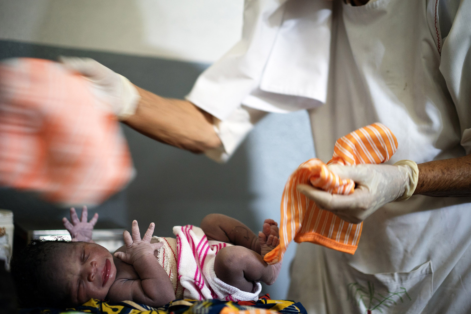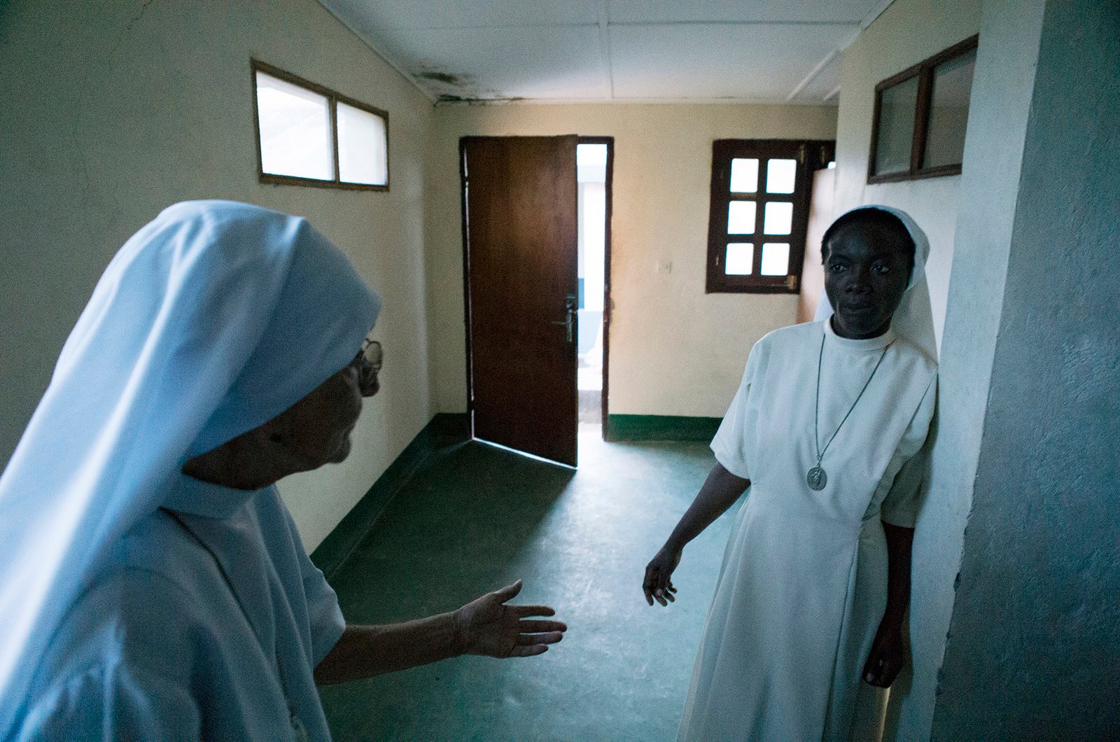 Sister Maria Concetta walks out of the labour room with a newborn baby in her arms and rushes through the corridors in search of a bed. The child is one of over 20,000 she has helped to deliver since she started working at the Zongo hospital near the Oubangui River, which flows between the Democratic Republic of the Congo (DRC) and the Central African Republic (CAR).