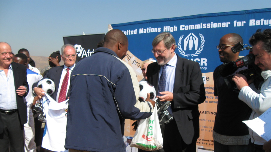 The shoes and balls and other equipment donated to UNHCR by Play4Africa will be distributed to the Peace Cup as well as other community-based programmes, schools and shelters that provide assistance and support to refugees throughout South Africa. Play4Africa also handed out sports kit and mosquito nets to vulnerable Africans, including refugees and the internally displaced, in more than a dozen countries.