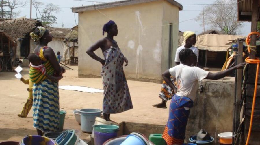 Women collect water in Guiglo. Many of those who have fled come from villages near the town.