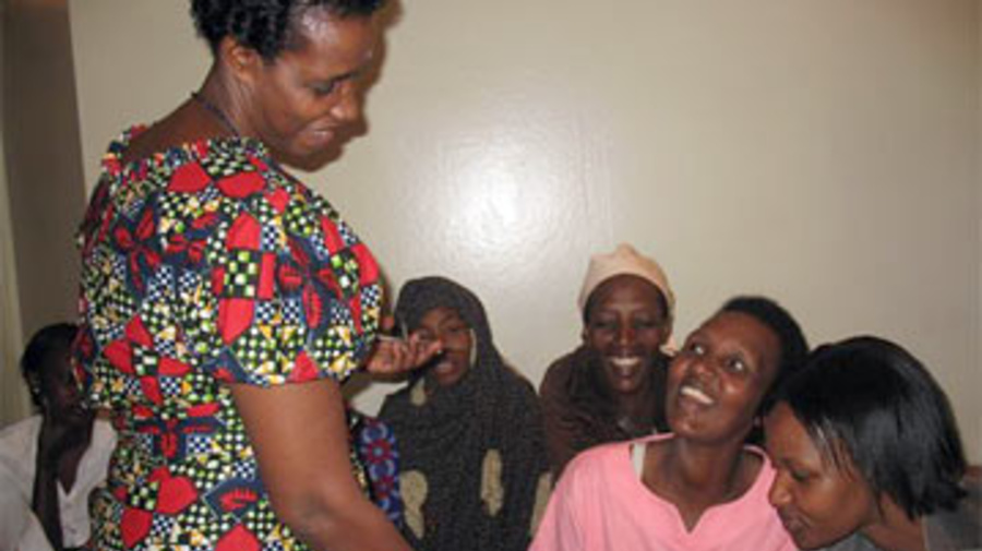 Rose Mapendo (standing) visits a clinic run by Mapendo International in Kenya.