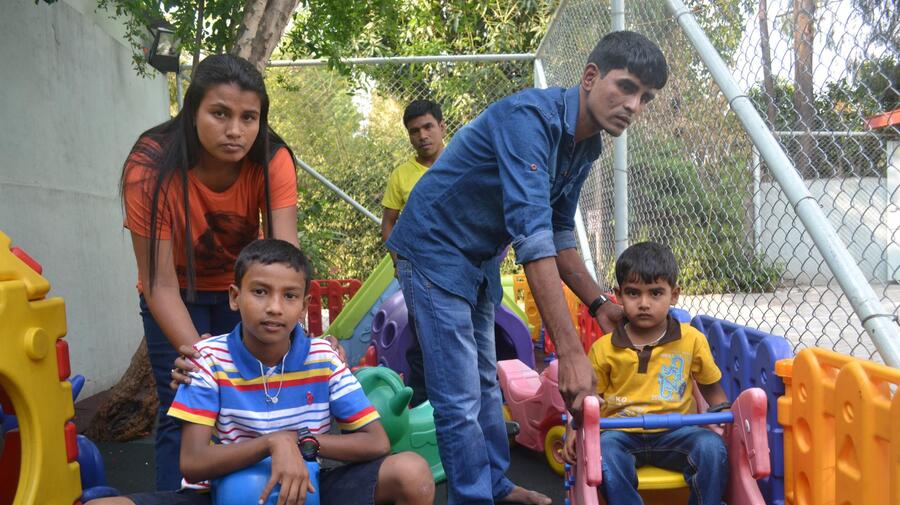 Rewati Maya Darjee with her husband and two sons. The family will soon be departing for resettlement in the United States.