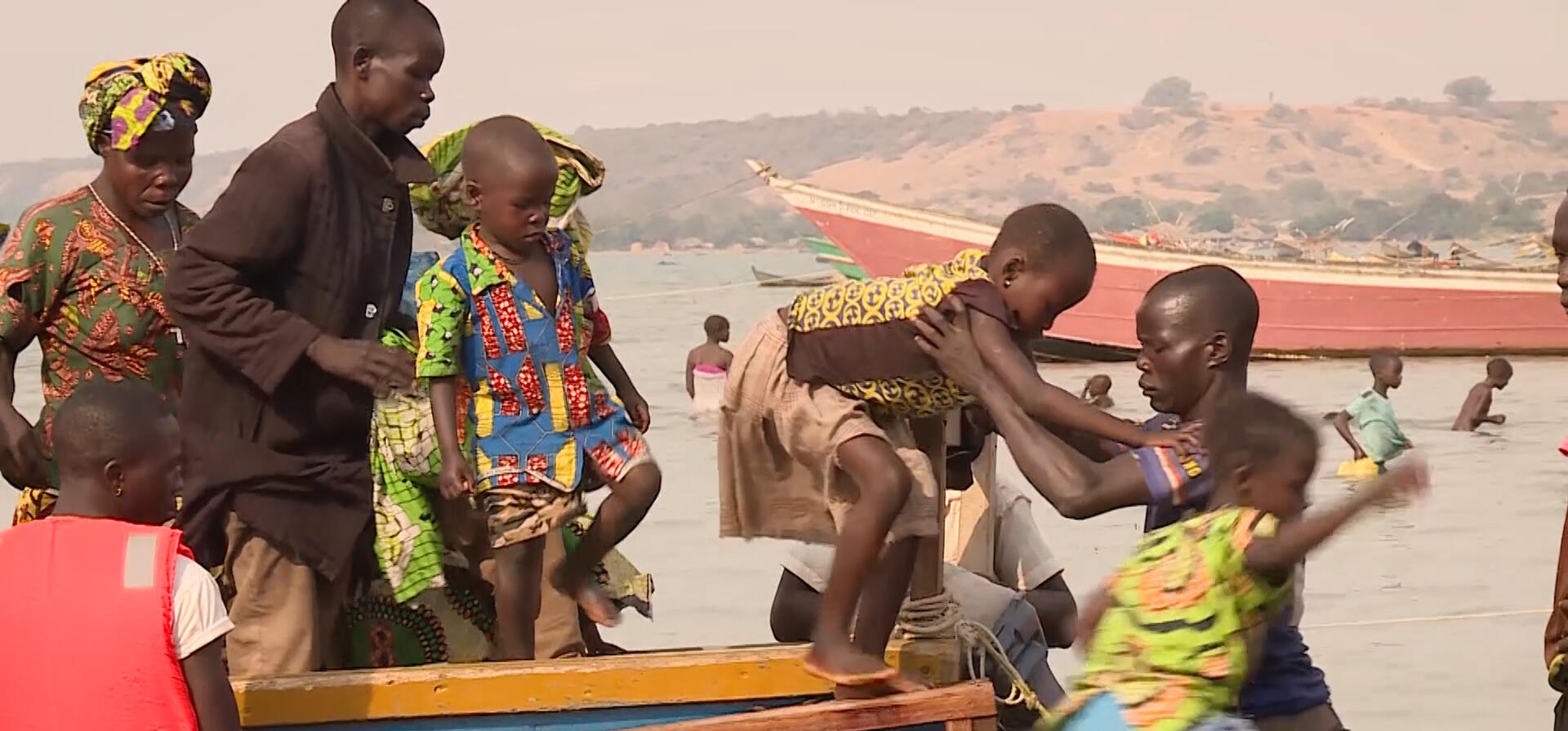 On Lake Albert’s shores, crowds of newly-arrived Congolese mill around, collecting their belongings or waiting to see if family members and relatives have arrived on the boats.