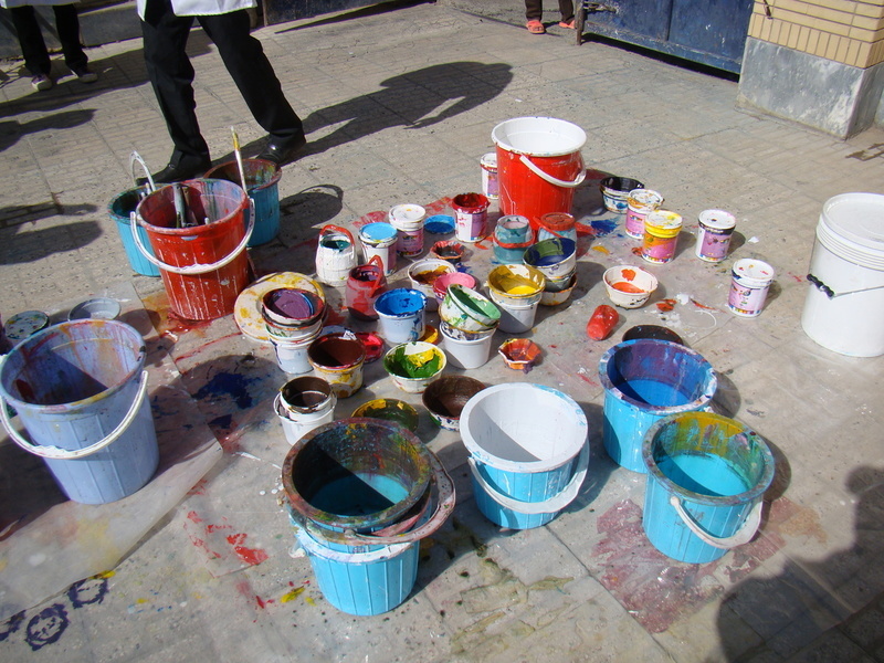 The community set to work litter-picking and transforming the hate slogan-ridden walls into striking, colourful murals of art. Two artists – one Iranian, one Afghan – and five art students worked with the children to design and apply the patterns, offering artistic guidance during a week of painting.