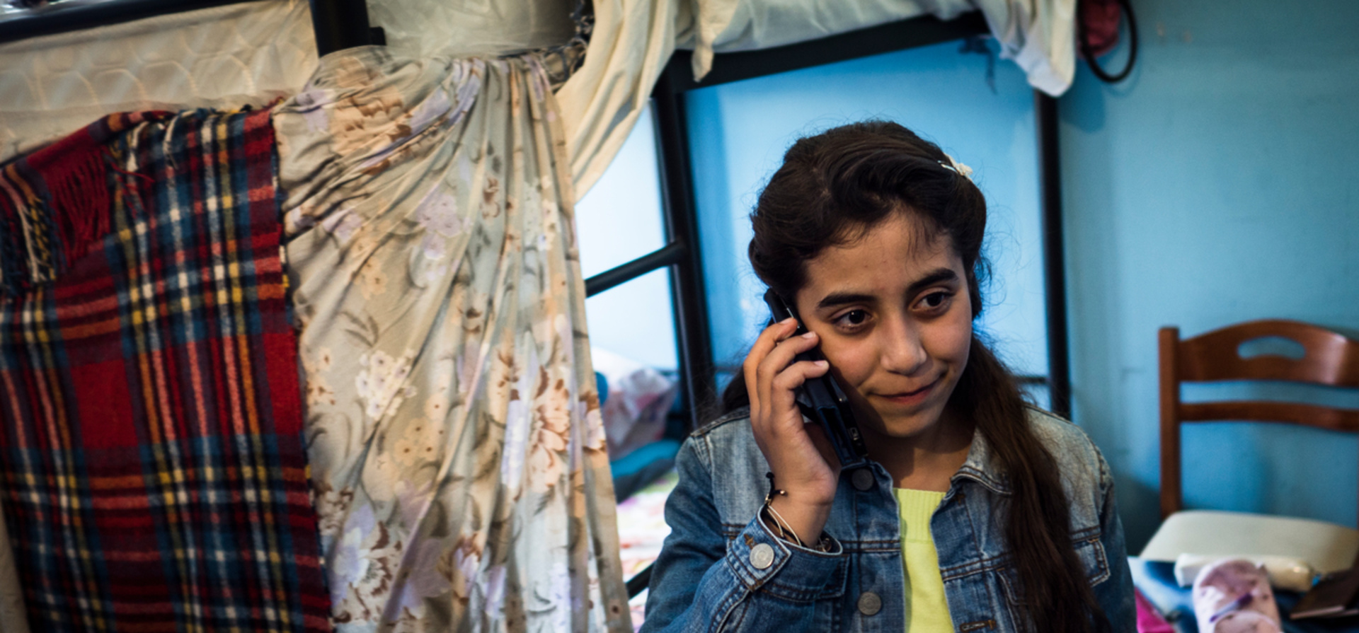 Thirteen-year-old Ensaf presses the phone to her ear, perched on her bunk bed in a refugee shelter on the Greek island of Leros. "I miss you, mama," she whispers.