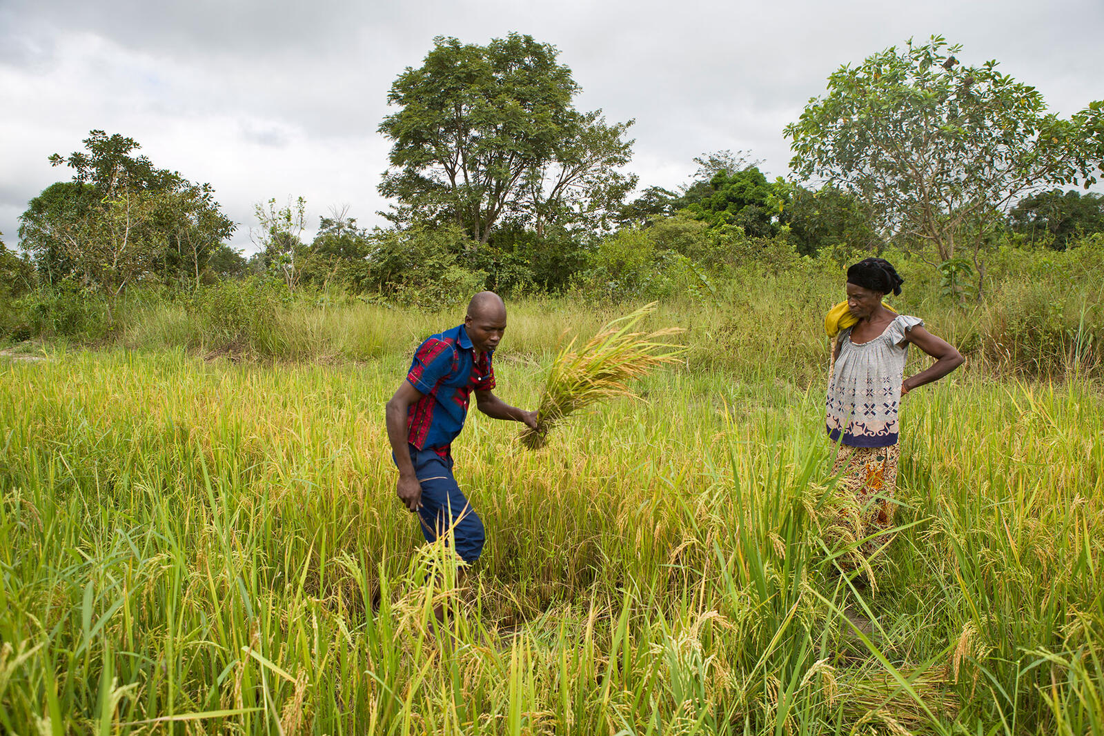 Pascal, 72, stands in front of the fields of rice that he cultivates with two of his 15 children, near Saria, in central Côte d'Ivoire.