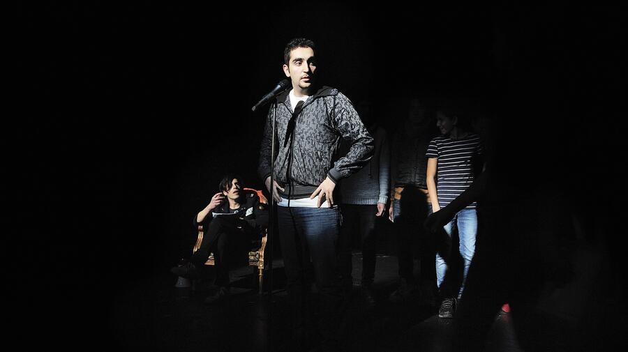 Johnny Mhanna performing at the Schauspielhaus in Vienna in "Die Schutzbefohlenen" ("The Protégés") based on a play by Austrian Nobel Prize Laureate Elfriede Jelinek. It Is considered to be a masterpiece of contemporary drama about flight, exile and emigration. Credit: UNHCR/Mark Henley