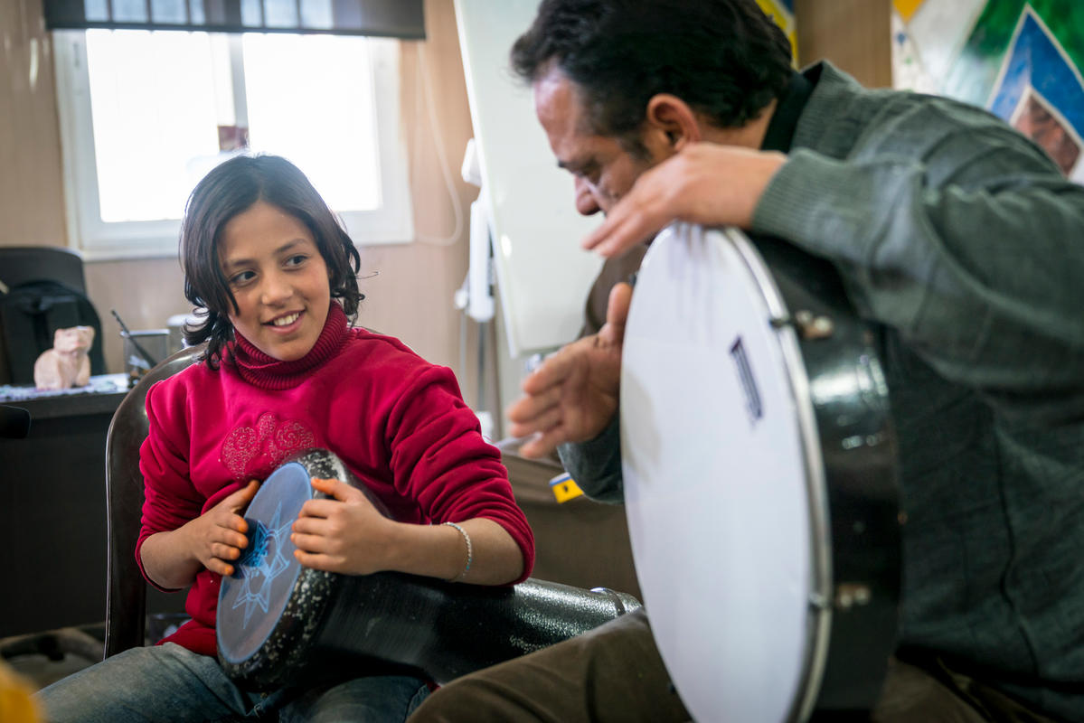 There he met Abu Hassan, a fellow resident who plays the oud – a traditional lute – and the two began playing music together “for the sheer joy of it”. The pair approached a UNHCR-funded community centre in the camp run by humanitarian organization CARE International, and suggested starting a music class for children, including those with disabilities.